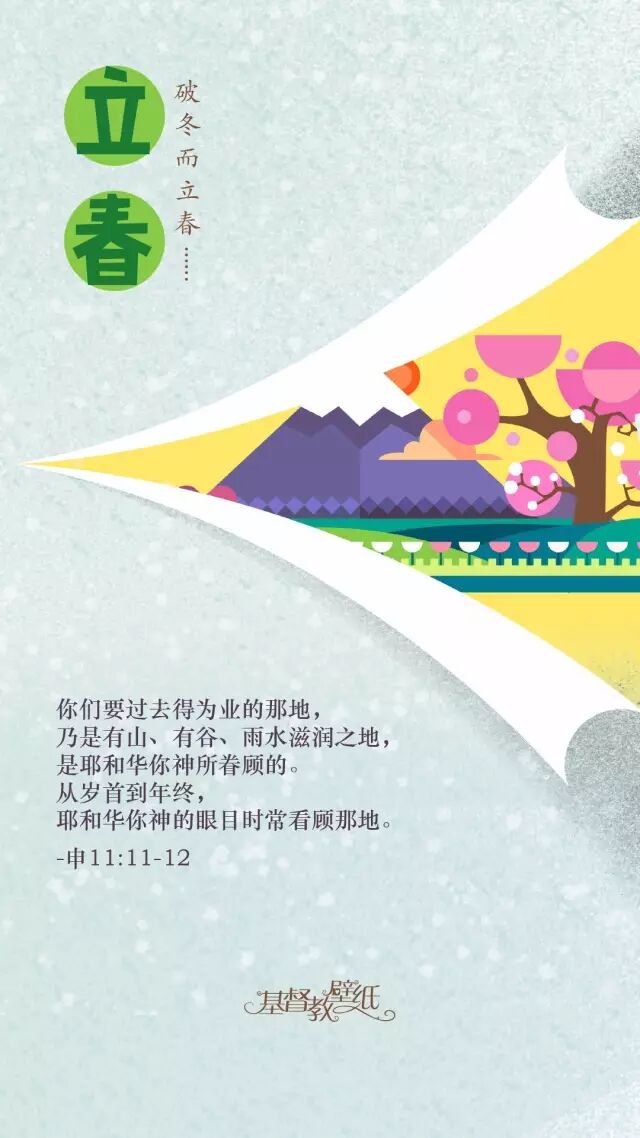 1、立春--你们要过去得为业的那地,乃是有山、有谷、雨水滋润之地,是耶和华你 神所眷顾的。从岁首到年终,耶和华你 神的眼目时常看顾那地。申11:11-12